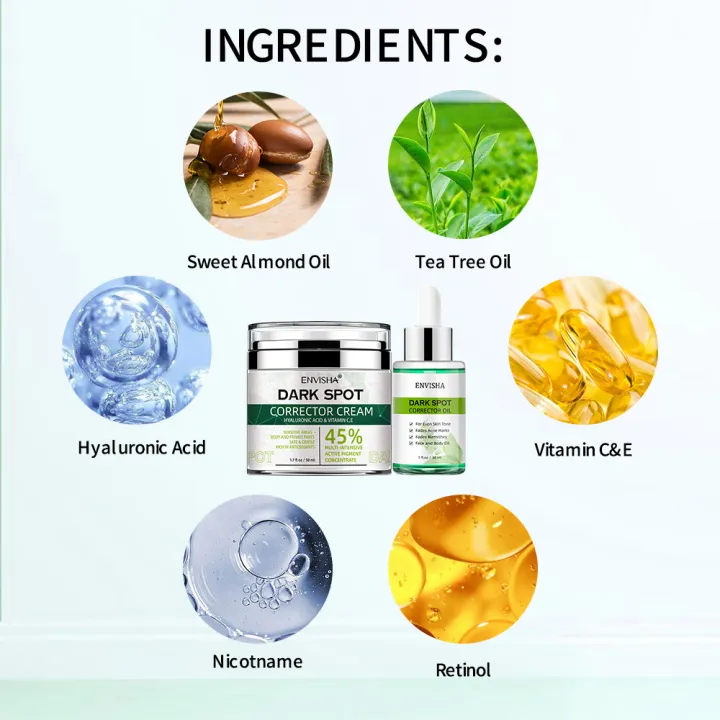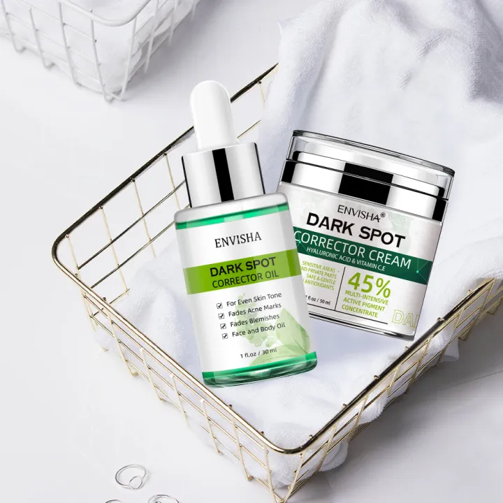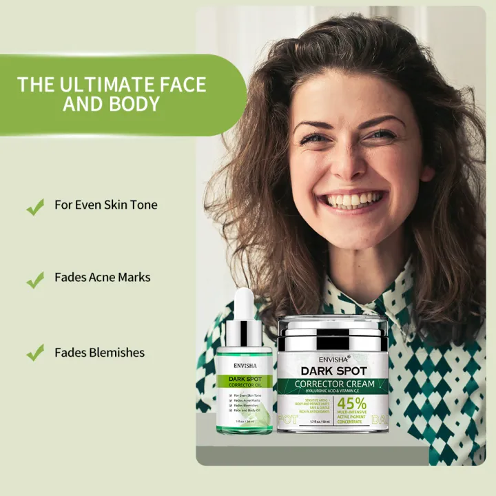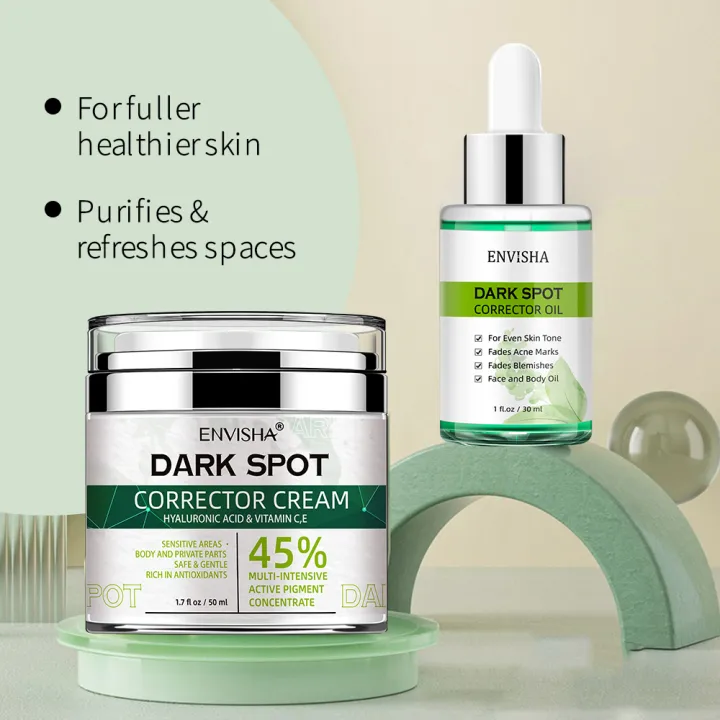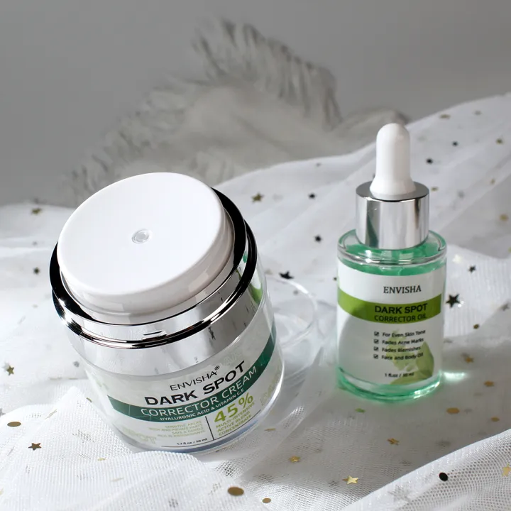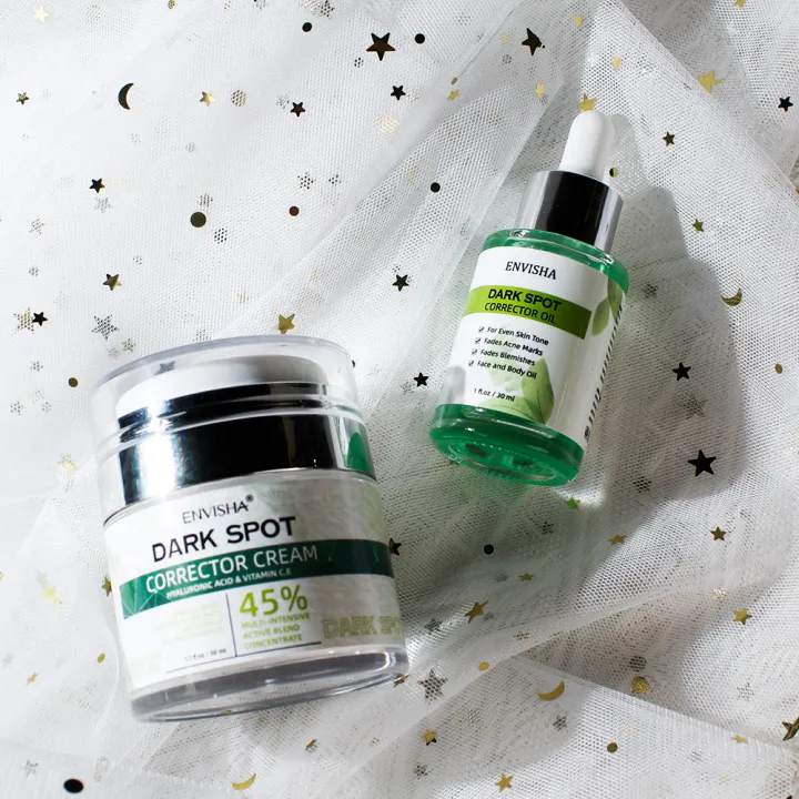 Reveal brighter, clearer skin with ENVISHA Dark Spot Corrector Oil. Powered by Green Tea, Vitamin C, Vitamin E, and Retinol, this lightweight oil targets dark spots, acne scars, melasma, and freckles while deeply nourishing the skin.